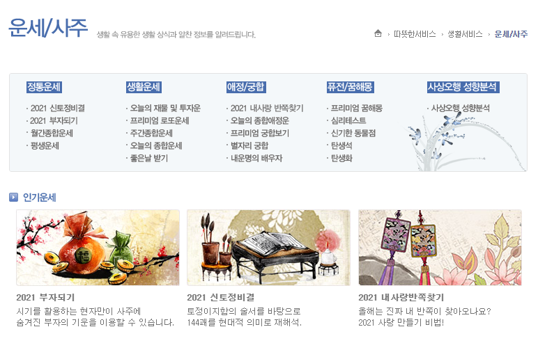 ๋ํ ๊ณต์ ํํ์ด์ง์์ ์ ๊ณตํ๋ ๋ฌด๋ฃ ์ด์ธ ์ฌ์ดํธ๋ค. 2021 ์ ํต์ด์ธ์ ์ ํ ์ ๋น๊ฒฐ, ํ์ ์ด์ธ์ ์๊ฐ ์ข ํฉ์ด์ธ ๋ฑ์ ๋ฌด๋ฃ๋ก ์์๋ณผ ์ ์๋ค. ํนํ <2021 ์ ํต์ด์ธ>๋ฅผ ํด๋ฆญํ๋ฉด ์ ํต์ด์ธ ๋ฟ ์๋๋ผ ์ฌ๋ฌผ์ด์ธ, ์ํ์ด์ธ, ์ ์ /๊ถํฉ ์ด๋ฐ ๊ฒ๋ ํจ๊ป ๋ณผ ์ ์๋ค. ๊ด๊ณ ๊ฐ ์๊ณ ๊น๋ํด์ ๋ณด๊ธฐ ํธํ๋ค. ๋ฌด๋ฃ ์ด์ธ ์ฌ์ดํธ ์ค์ ๊ฐ์ฅ ์ข์ ๋ฏ.