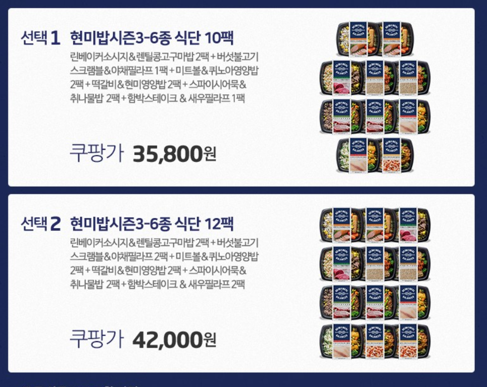 ๊ทธ๋์ ์ด๋ฒ์๋ ๊ฒฐ๋จ์ฝ '๋์๋ฝ'๋ง ๋จน์ผ๋ฉฐ ์๋จ ์กฐ์ ์ ํด๋ณด์๋ ์ฌ์ฐ์ผ๋ก ์ด์์ด๋ฉด ๋ง์๊ณ ๊ฑด๊ฐํ ๋์๋ฝ์ผ๋ก ๊ณ ๋ฅด๊ณ ๊ณจ๋ผ '๊ณ ์จ ์ด ๋ฐ'์ ํํ๋ค. ํ๋ฏธ๋ฐฅ์ ๊ธฐ๋ณธ์ผ๋ก 6๊ฐ์ง ๋ฉ์ธ ๋ฉ๋ด๋ก ๊ตฌ์ฑ๋ 12ํฉ ํ ์ธํธ๋ฅผ ๊ตฌ๋งคํด ๋จน์ด๋ดค๋ค.