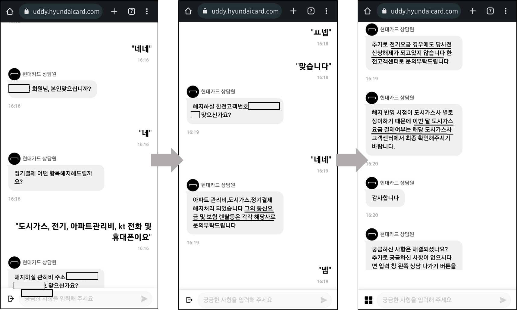 ์๋ ์ ๊ฐ ํ๋์นด๋ ์๋ด์๊ณผ ๋๋ ๋ํ๋ด์ฉ์ธ๋ฐ์. ๊ฐ๋จํ ๋ณธ์ธํ์ธ ํ(ARS ์ ํ๊ฐ ๋ฐ๋ก ์ต๋๋ค) ์ํ๋ ์ ๊ธฐ๊ฒฐ์ ํด์ง ํญ๋ชฉ์ ์๋ ค์ฃผ๋ฉด ๊ฐ ํญ๋ชฉ์ ํ์ธ์ฌํญ ์ฒดํฌ ํ ํด์ง๋ฅผ ๋์์ค๋๋ค. ์ํํธ ๊ด๋ฆฌ๋น์ ๋์๊ฐ์ค ์๊ธ์ ๋ฉ์์ง ์๋ด์ ํตํด ํ ๋ฒ์ ํด๊ฒฐ์ด ๋์๊ณ ์. ์ถ๊ฐ๋ก ์ ๋ณ๊ฒฝ๋์๋์ง ์ ๊ฐ ํ์ธ๋ง ํ๋ฉด ๋ฉ๋๋ค.