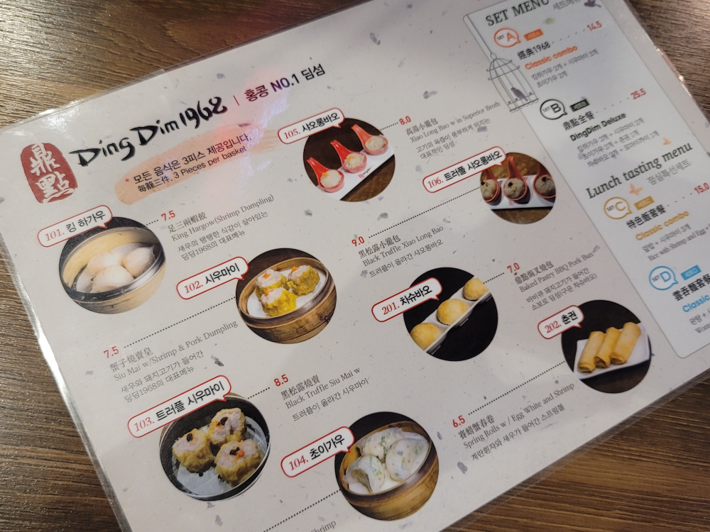๋ฉ๋ค1968์ ๋ค์ฌ ๋ฉ๋ด์ ๋๋ค. ๋ชจ๋ ๋ค์ฌ ๋ฉ๋ด๋ 3ํผ์ค ์ ๊ณต์ด ๊ธฐ์ค์ ๋๋ค. ํน ํ๊ฐ์ฐ, ์ค์ค๋กฑ๋ฐ์ค, ์์ฐ๋ง์ด, ์ด์ด๊ฐ์ฐ, ์ฐจ์๋ฐ์ค, ์ถ๊ถ ๋ฑ ๋ค์ฌ ์ข ๋์ ๋ณด์ ๋ถ๋ค์ ๋ค ์๋ ๋์ค์ ์ธ ๋ค์ฌ ๋ฉ๋ด๋ค์ด ๋ชจ๋ ์์ต๋๋ค.