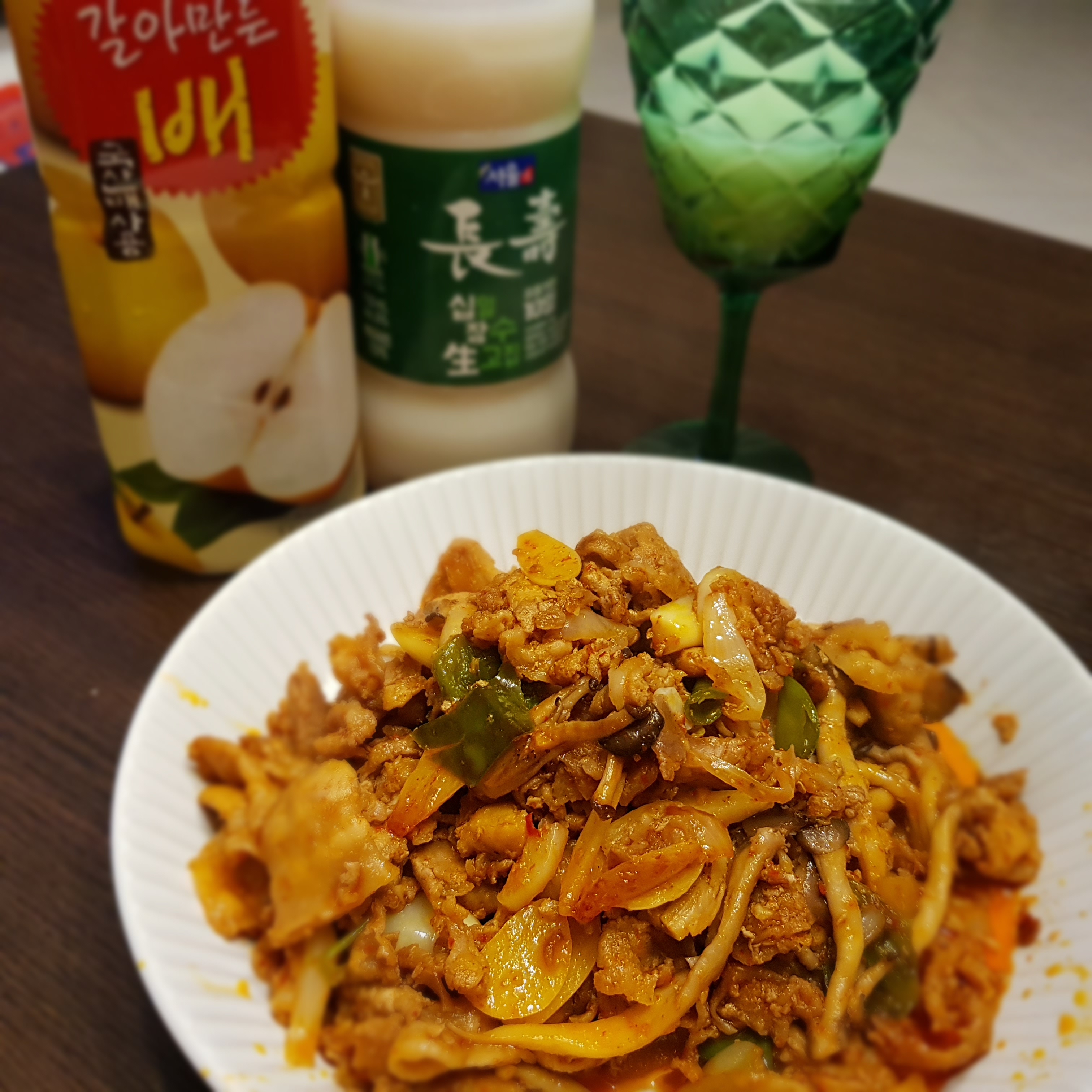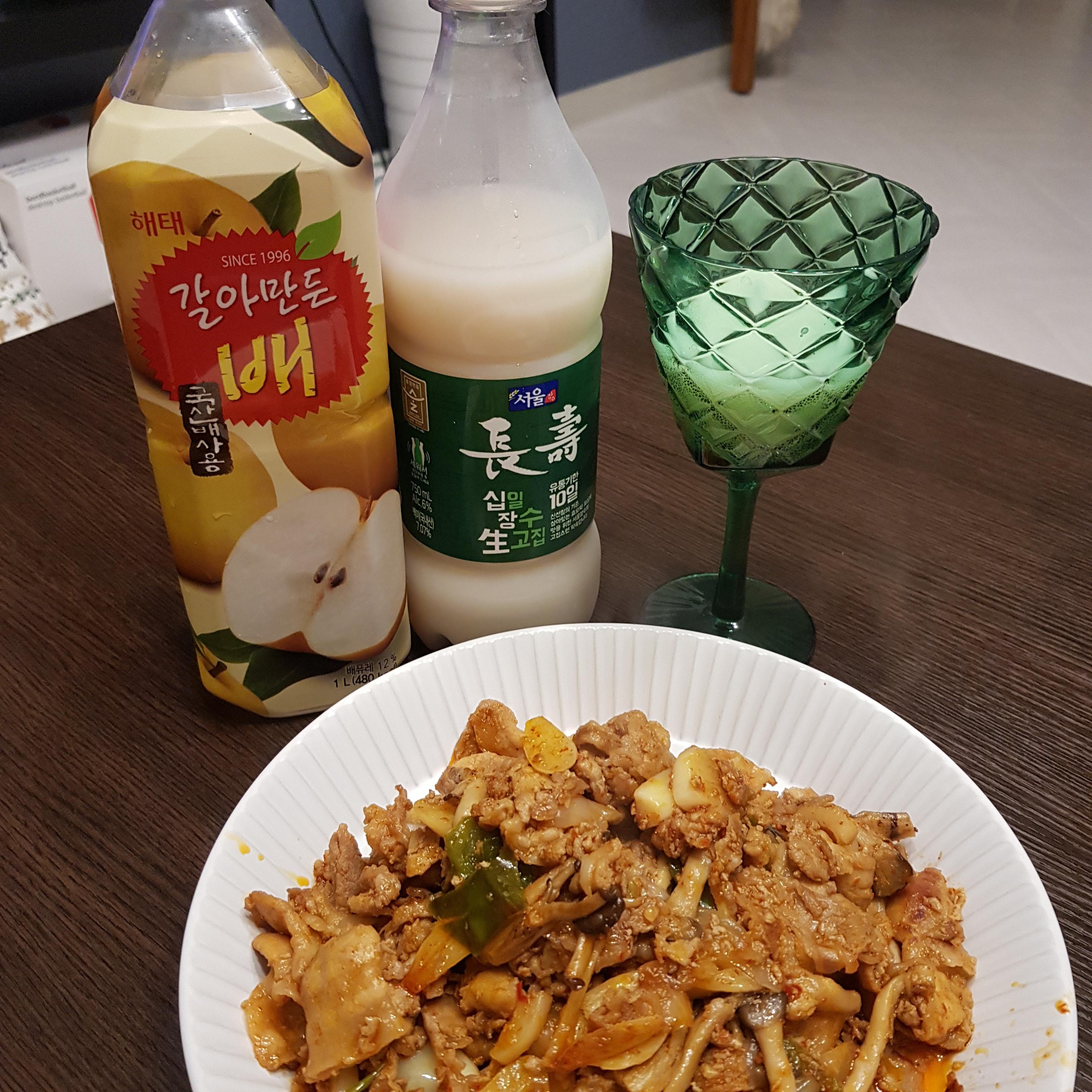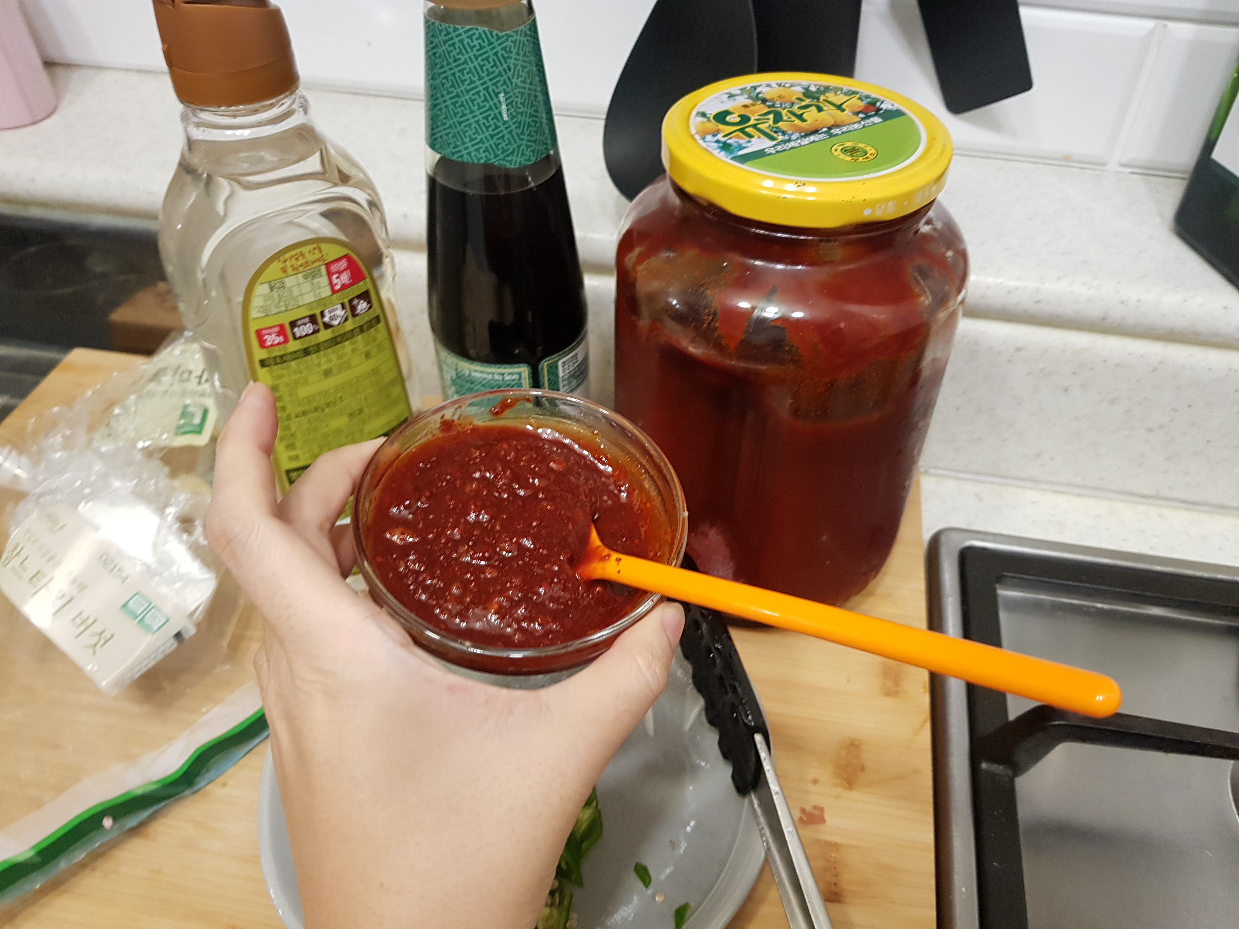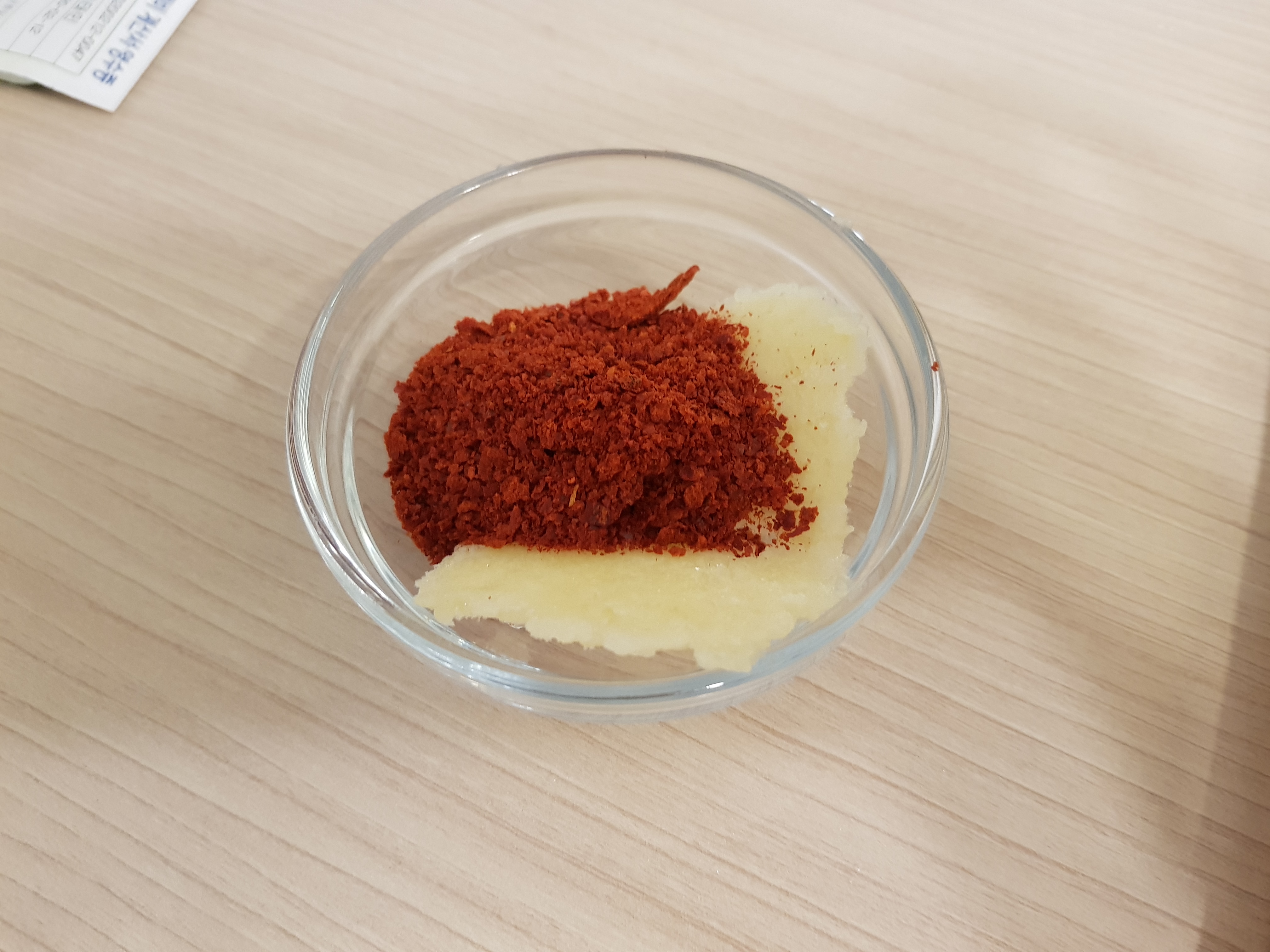 ๋ค์ง๋ง๋ 2์คํผ, ๊ณ ์ถ๊ฐ๋ฃจ 2.5์คํผ, ๊ณ ์ถ์ฅ 2์๊ฐ, ๊ฐ์ฅ 2 ์๊ฐ, ์ฌ๋ฆฌ๊ณ ๋น 2์๊ฐ์ ๋ฃ๊ณ ์์ผ๋ฉด ์๋