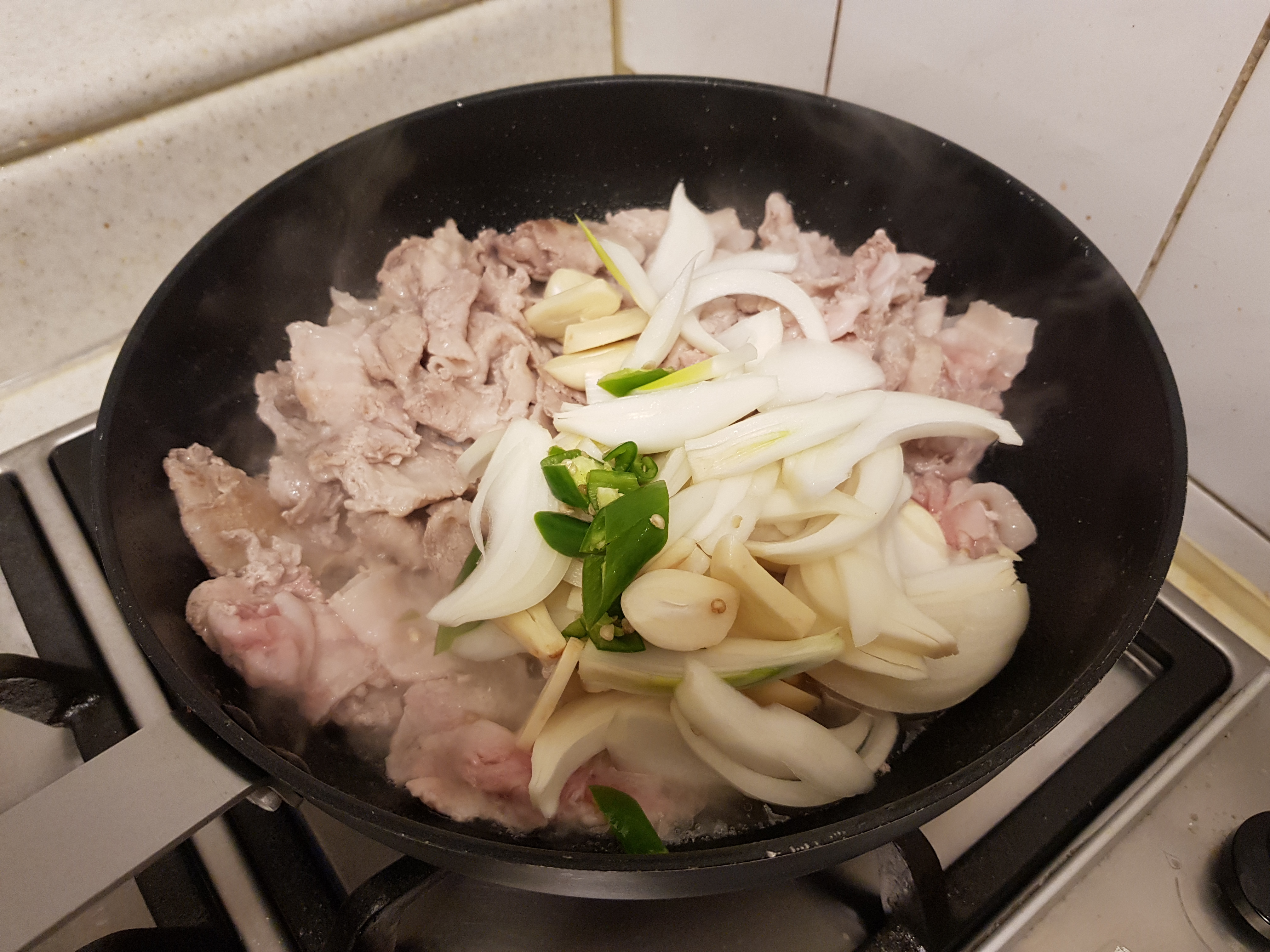 <3> ์ต์ ๊ณ ๊ธฐ์ ์ฌ๋ฃ๋ฅผ ๋ฃ๊ณ ๋ค์ ๋ณถ๋๋ค.
