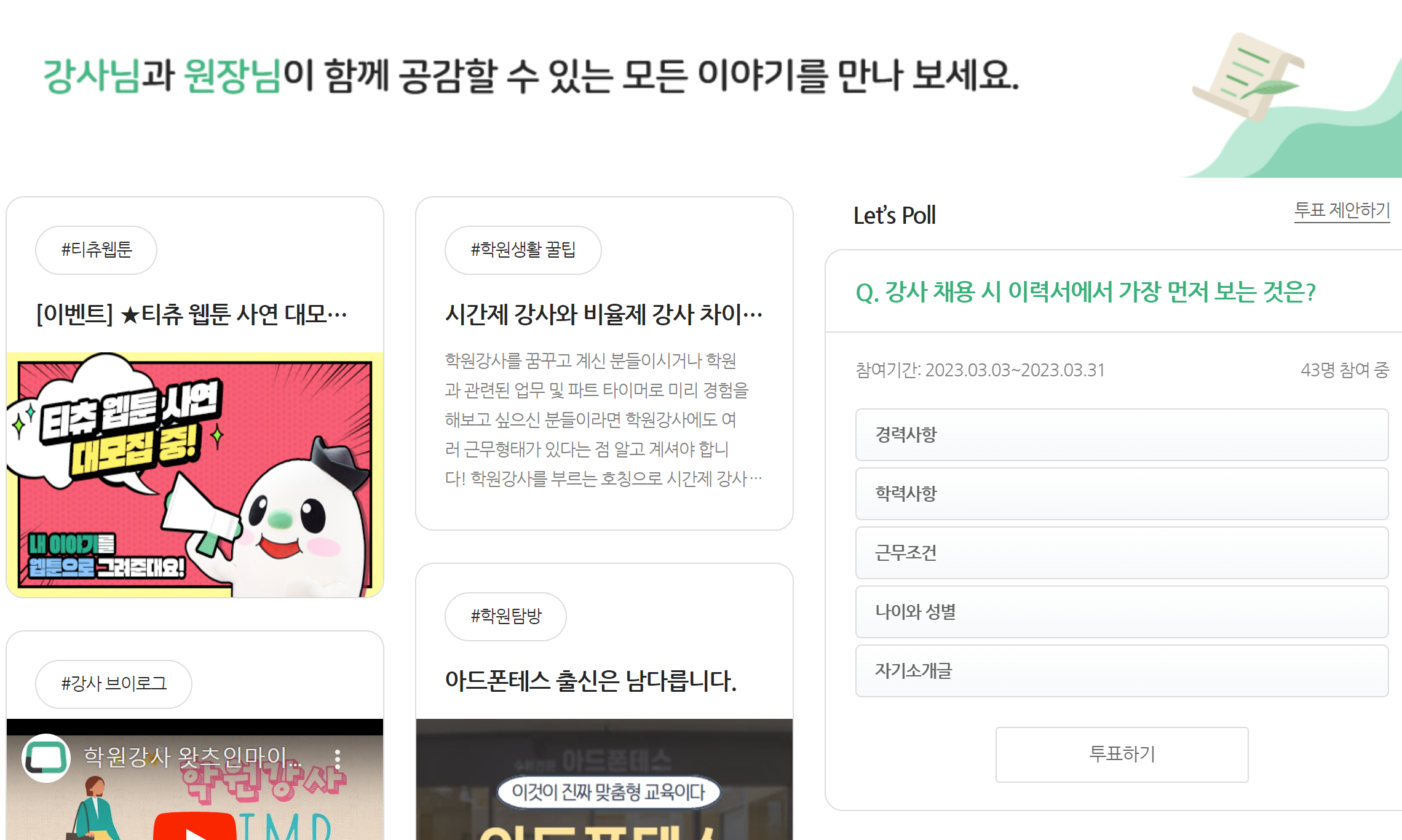 ๊ฐ์ฌ, ๊ต์ฌ ์ทจ์ ํฌํธ ํ์ฅ๋ง์