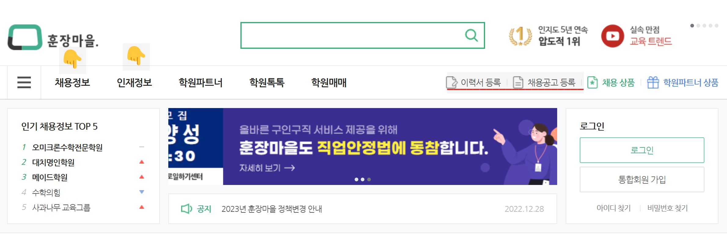 ํ์ฅ๋ง์์ ๊ตญ๋ด ์ต์ด ํ์ ๊ฐ์ฌ ์ทจ์ ์ฌ์ดํธ์ด์ ์ต๋ ๊ต์ก ์ธ์ฌ ์ฑ์ฉ ํ๋ซํผ์ผ๋ก ํ์ฌ ์น์ฌ์ดํธ์ ๋ชจ๋ฐ์ผ ์ฑ ๋ ๊ฐ์ง ํํ๋ก ์๋น์ค๋ฅผ ์ ๊ณตํ๊ณ ์์ต๋๋ค. ํนํ ๋ชจ๋ฐ์ผ ์ฑ์ ๋ง์ถคํ ์ฑ์ฉ๊ณผ ๋ ๊ฐํธํ ๊ตฌ์ง์ ์ ํฉํ ์ฌ์ฉ ํ๊ฒฝ์ ์ ๊ณตํฉ๋๋ค.