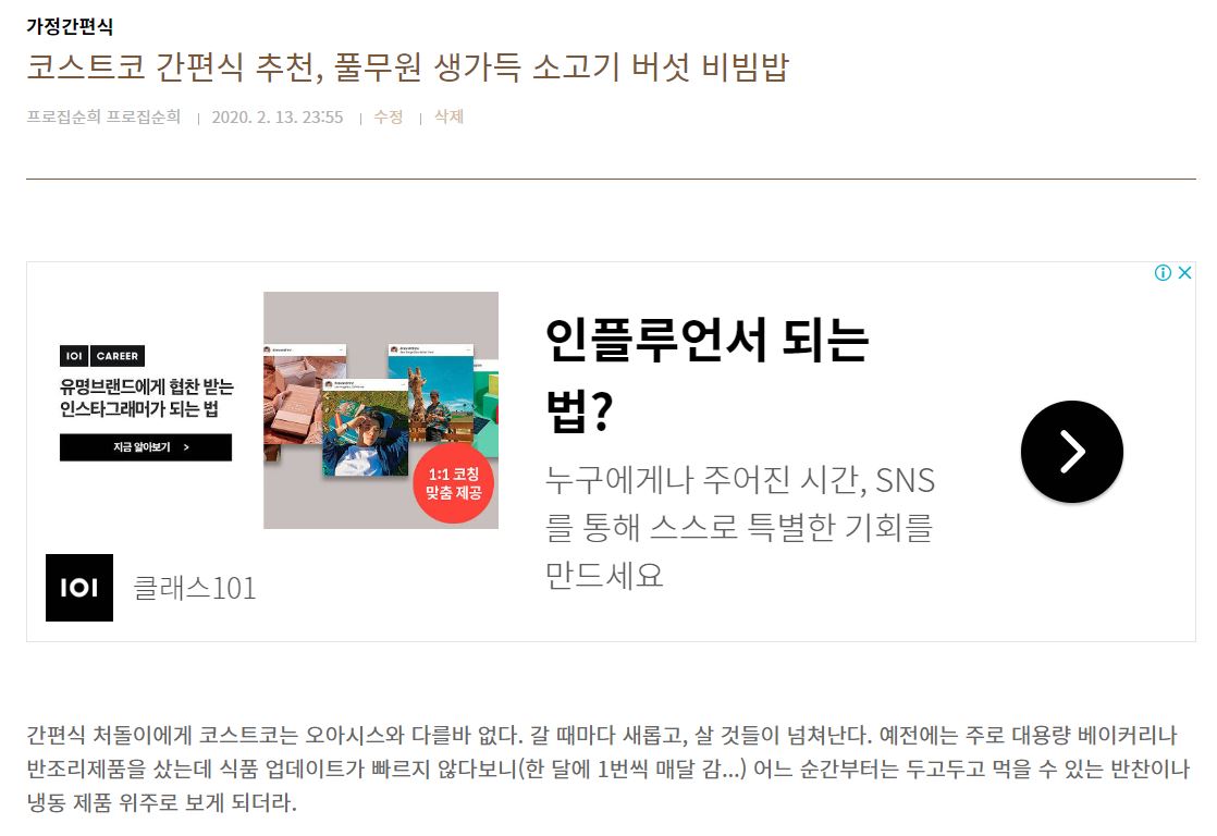 2) ๊ฒ์๋ฌผ ์๋จ์ ๋ค์ด๊ฐ๋ ๋์คํ๋ ์ด ๊ด๊ณ