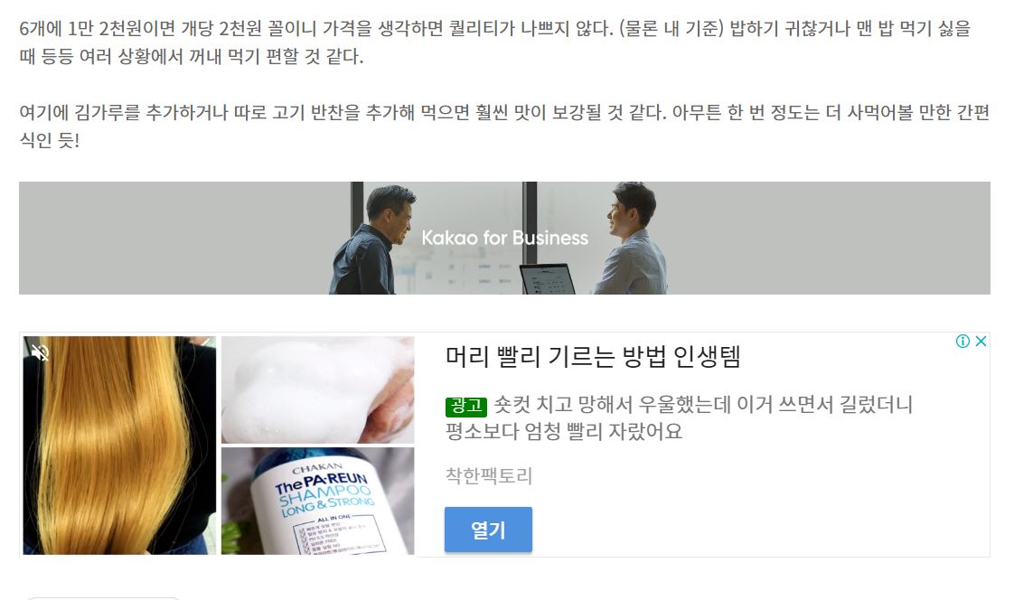 3) ์ฝํ ์ธ ๋ด ์๋์ฝ์ ๊ด๊ณ / ์นด์นด์ค ์ ๋ํ ํ ์คํธ ๋ฐฐ๋