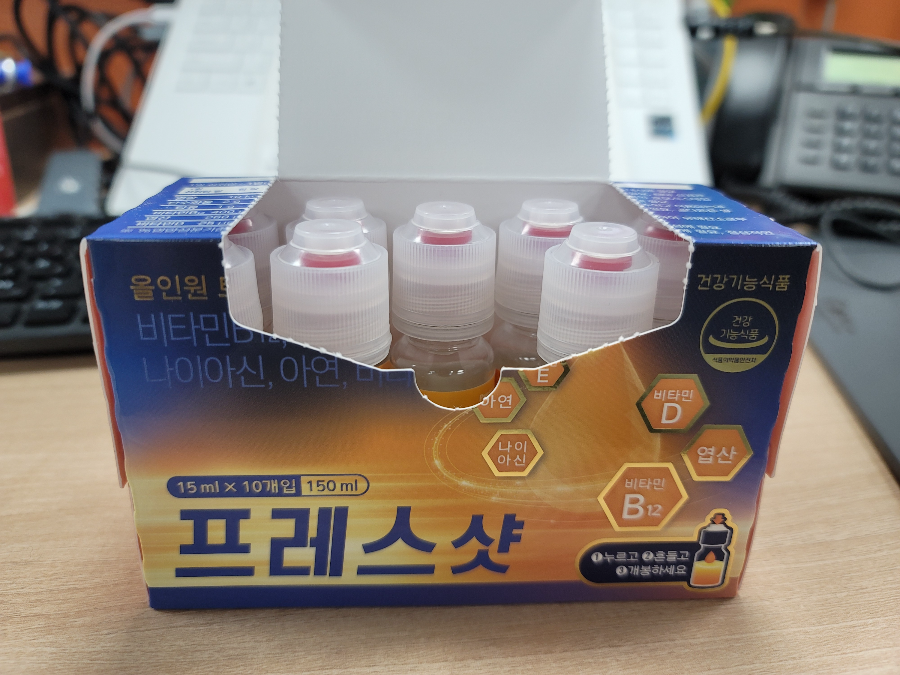 ํ๋ ์ค์ท์ 15ml์ ์ฐํ์ด 10๊ฐ๋ค์ด ์๊ณ , 10์ผ๋ถ์ ๋๋ค. ํ๋ฃจ์ 1๊ฐ์ฉ ๋จน๋ ๊ฑฐ๋ผ๊ณ ์๊ฐํ์๋ฉด ๋์. ์ธ๊ด์ ๋จน๋ ๋ฐฉ๋ฒ์ด ์์ฃผ ๊ฐ๋จํ๊ฒ ์จ์ ธ ์์ต๋๋ค.