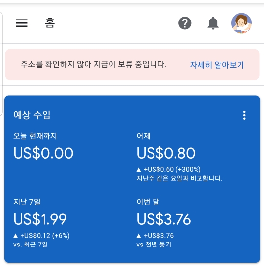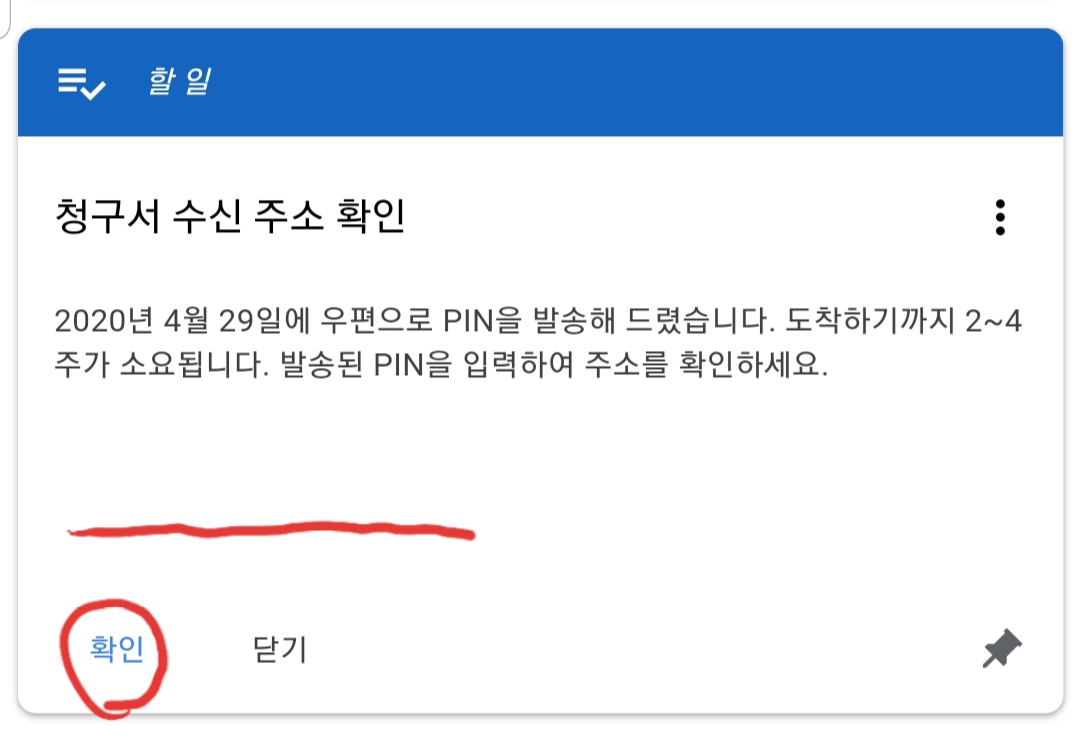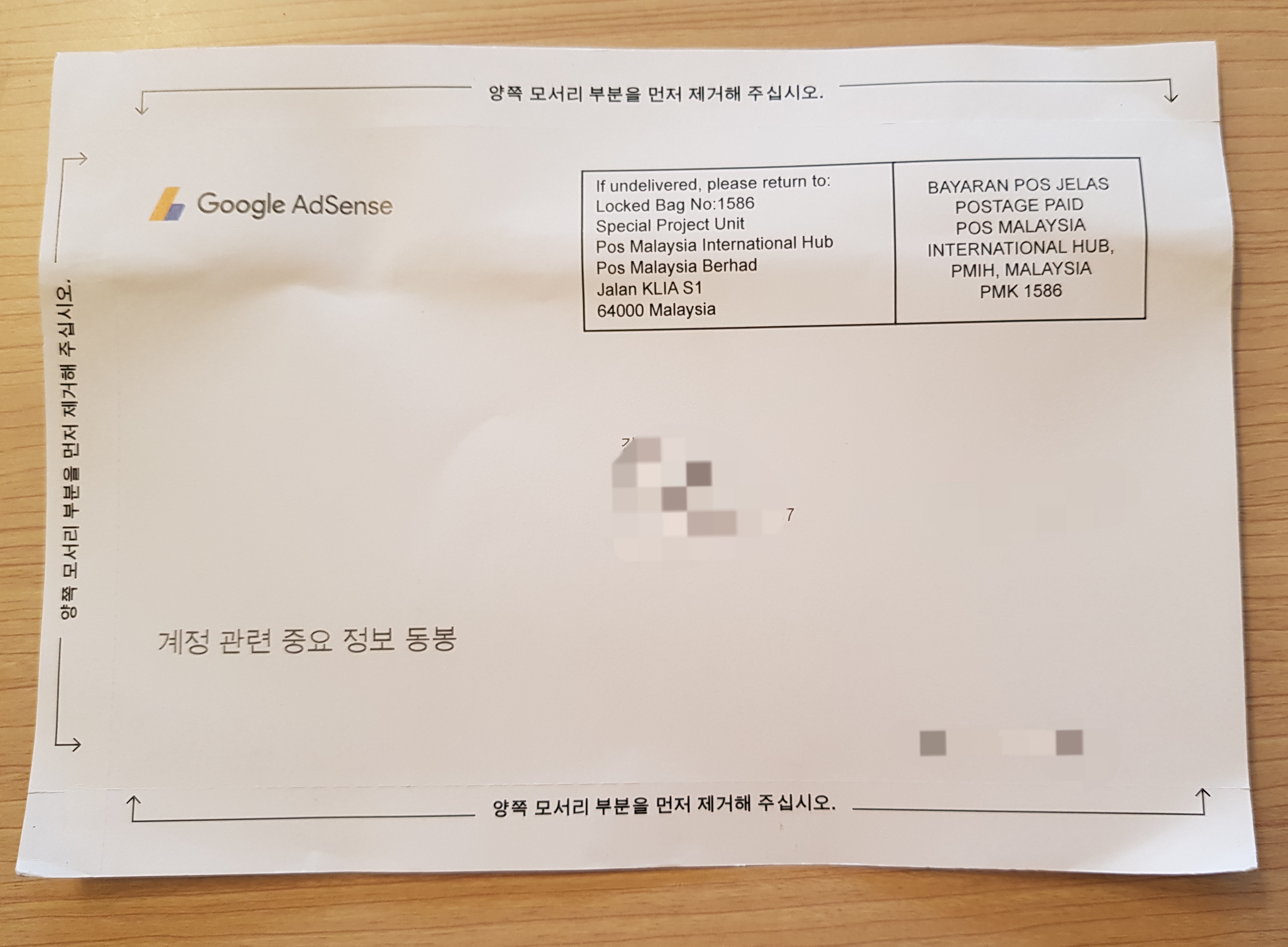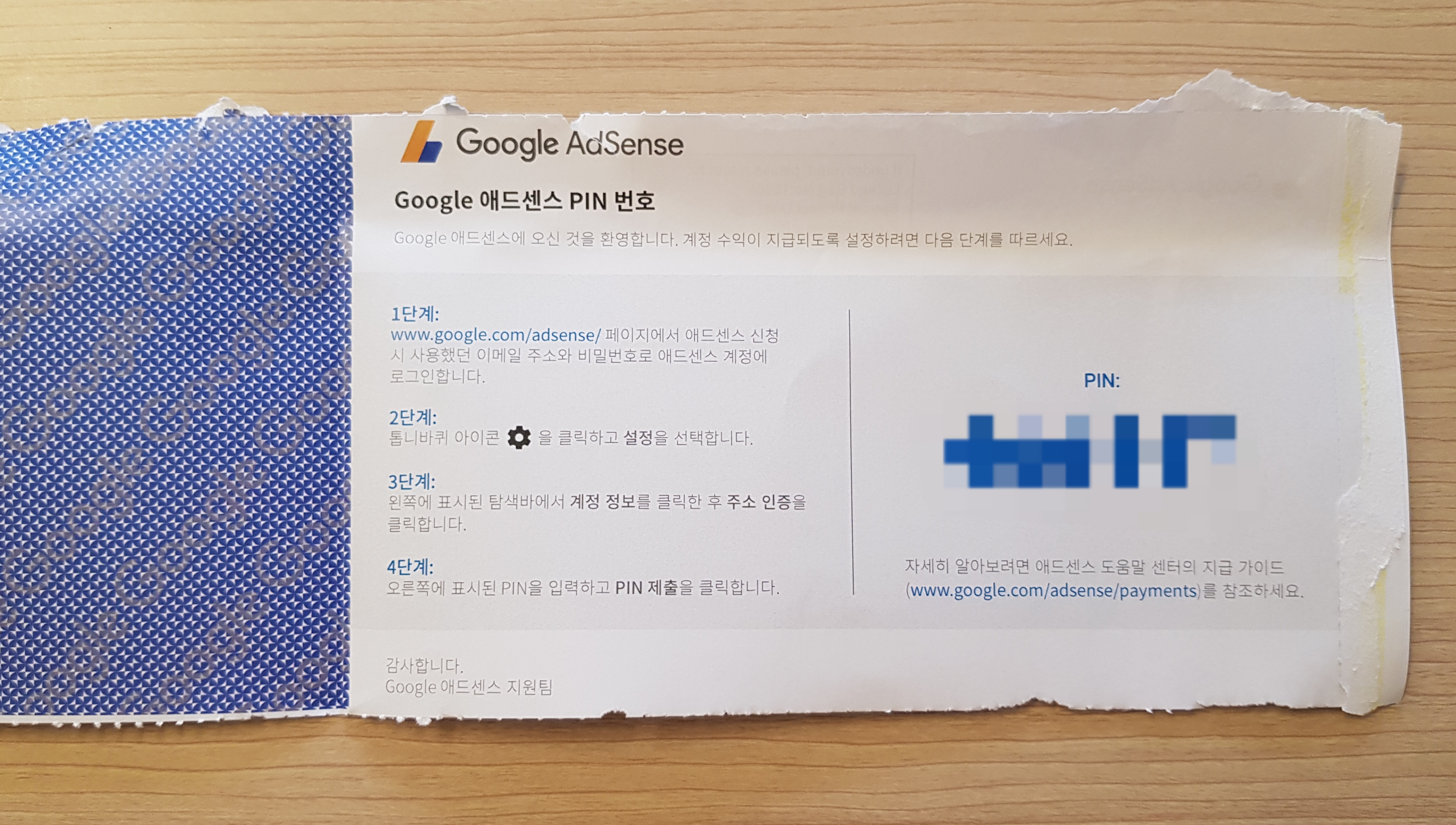 ์ ์ฒด ์์ ์ด 10๋ฌ๋ฌ๊ฐ ๋๊ฒ ๋๋ฉด, ๊ณ์ ์์ต์ ์ง๊ธ๋ฐ์ ์ ์๋ ํ๋ฒํธ๋ฅผ ๋ฐ๊ฒ ๋๋ค. ํ๋ฒํธ๋ ๋ฉ์ผ์ด๋ ๋ค๋ฅธ ์จ๋ผ์ธ ์ฑ๋๋ก ๋ฐ์ ์ ์๋ ๊ฒ์ด ์๋๋ผ, ์ค๋ก์ง ์ฐํธ์ผ๋ก๋ง ๋ฐ์ก๋๋ค. 10๋ฌ๋ฌ๋ฅผ ๋ฌ์ฑํ๋ฉด ๊ตฌ๊ธ ์ ๋์ผ์ค ๊ด๊ณ ๊ณ์ ์ PIN๋ฒํธ๋ฅผ ์ ์ฒญํ๋ผ๋ ๋ฒํผ์ด ๋จ๊ณ , ํด๋น ๋ฒํผ์ ๋๋ฅด๋ฉด ๊ด๊ณ ๊ณ์ ์ ์ค์ ํด๋์๋ ์ฃผ์๋ก ์ฐํธ์ด ๋ฐ์ก๋๋ค.