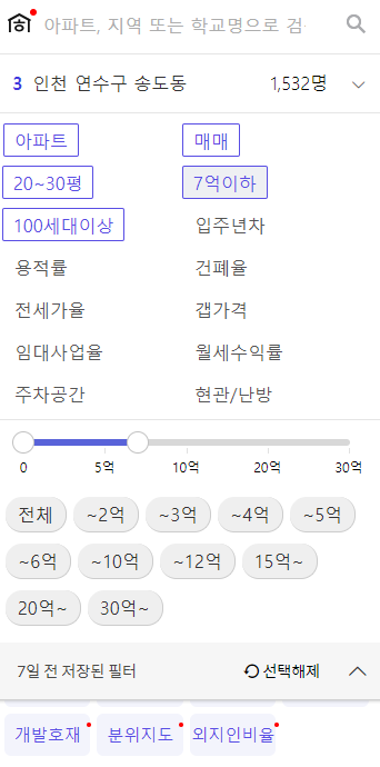 ํธ๊ฐฑ๋ ธ๋ ธ๋ ์๋์ ๊ฐ์ด ๋ด๊ฐ ์ํ๋ ์กฐ๊ฑด๋ค์ ํ์ ์ผ๋ก ์ฝ์ฝ ์ง์ด, ์กฐ๊ฑด์ ๋ง๋ ๋งค๋ฌผ๋ง์ ๋ณผ ์ ์๋๋ก ์๋น์คํ๊ณ ์๋ค. ๋๋ #์ํํธ #๋งค๋งค #20~30ํ #7์ต์ดํ #100์ธ๋์ด์์ ์กฐ๊ฑด์ผ๋ก ์์ธ ์ ์ญ์ ๋งค๋ฌผ๋ค์ ํ์ด ๋ณด์๋ค.