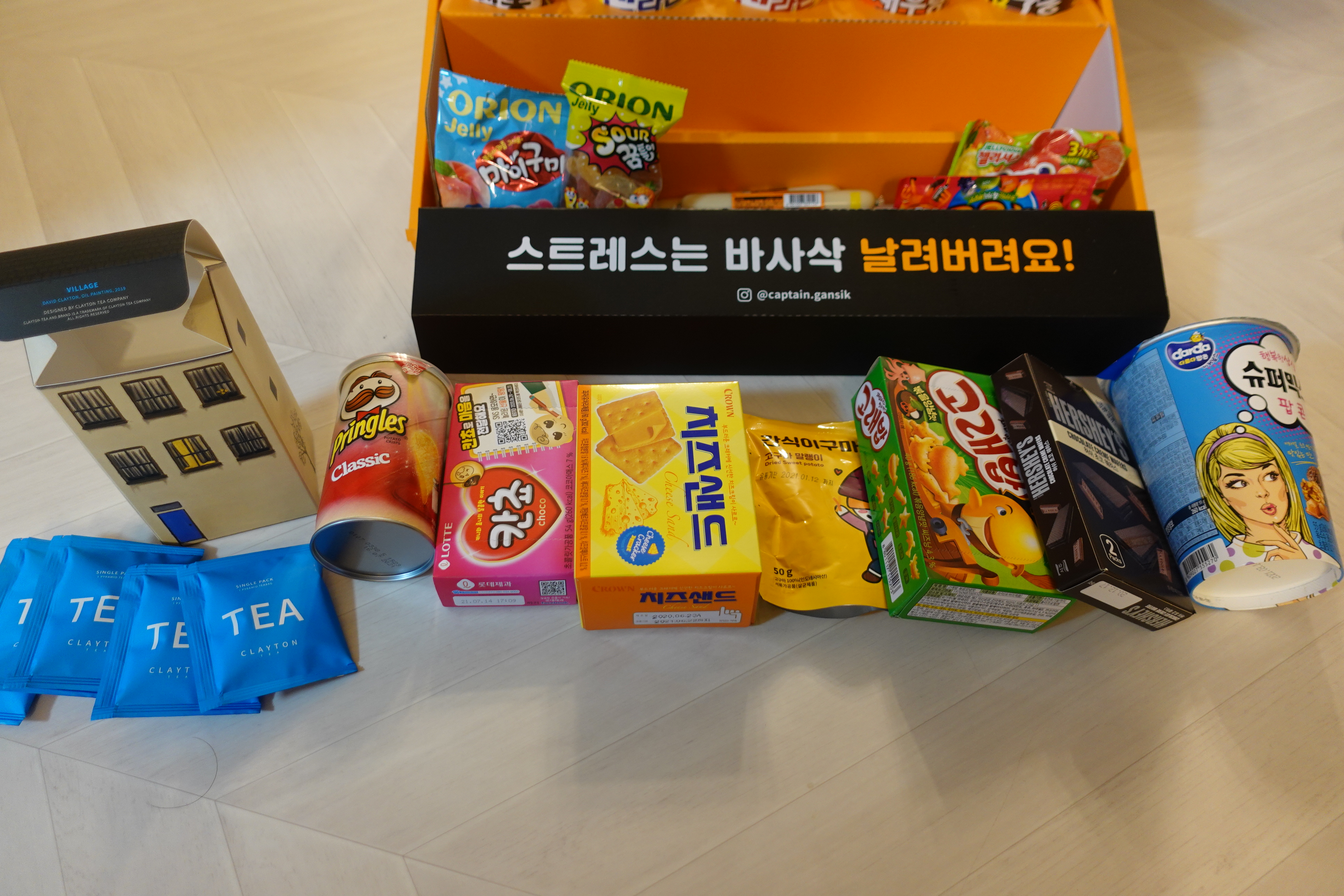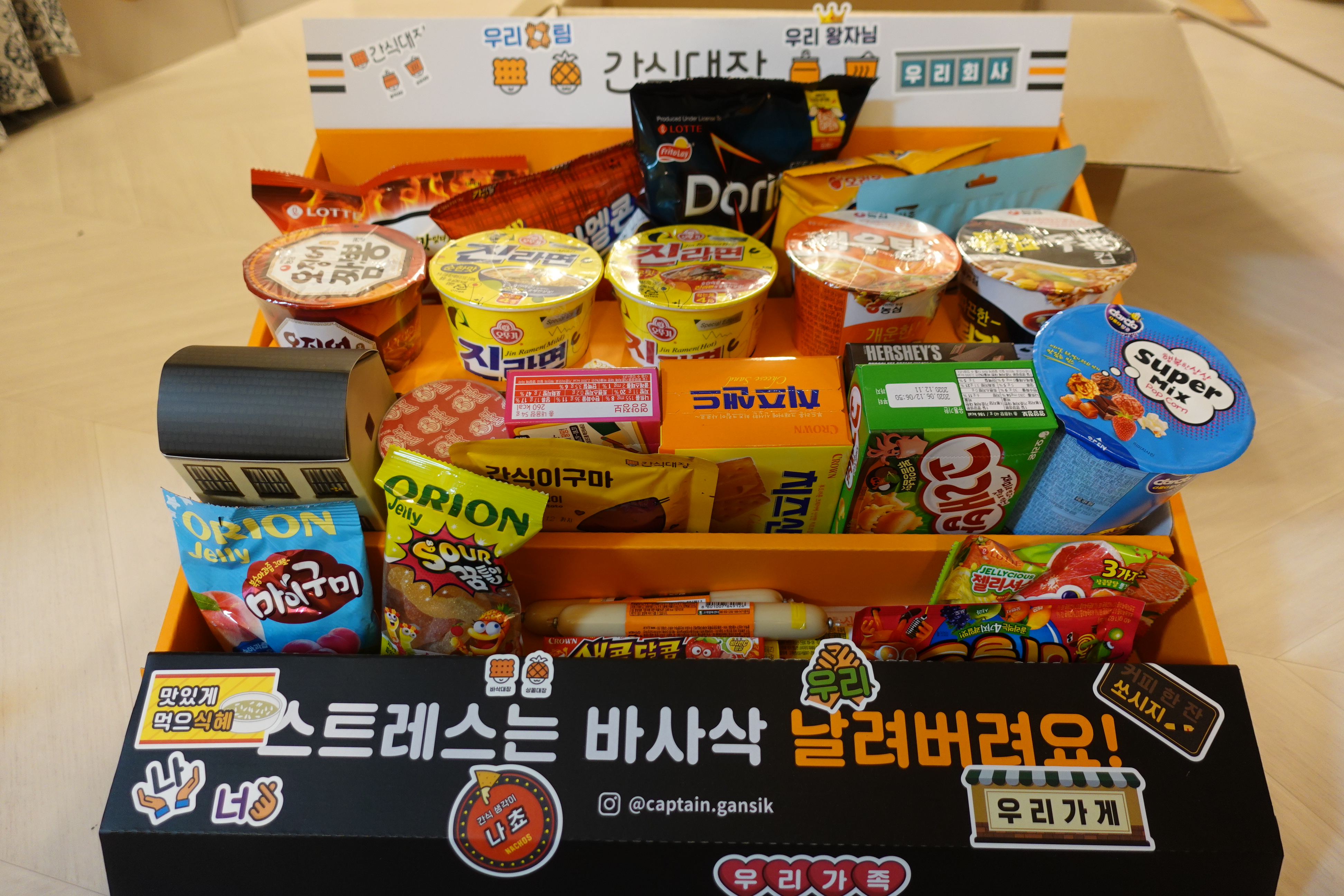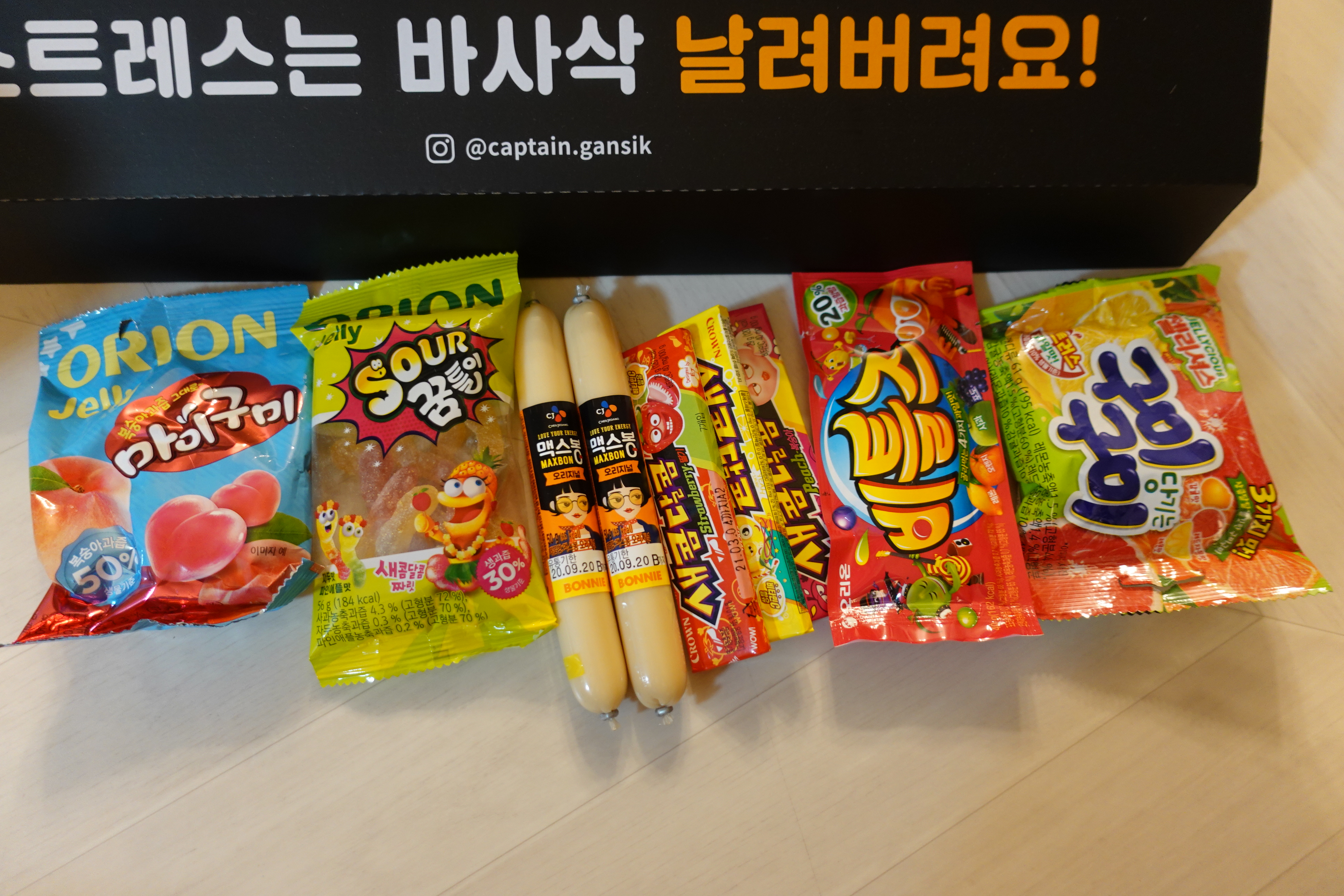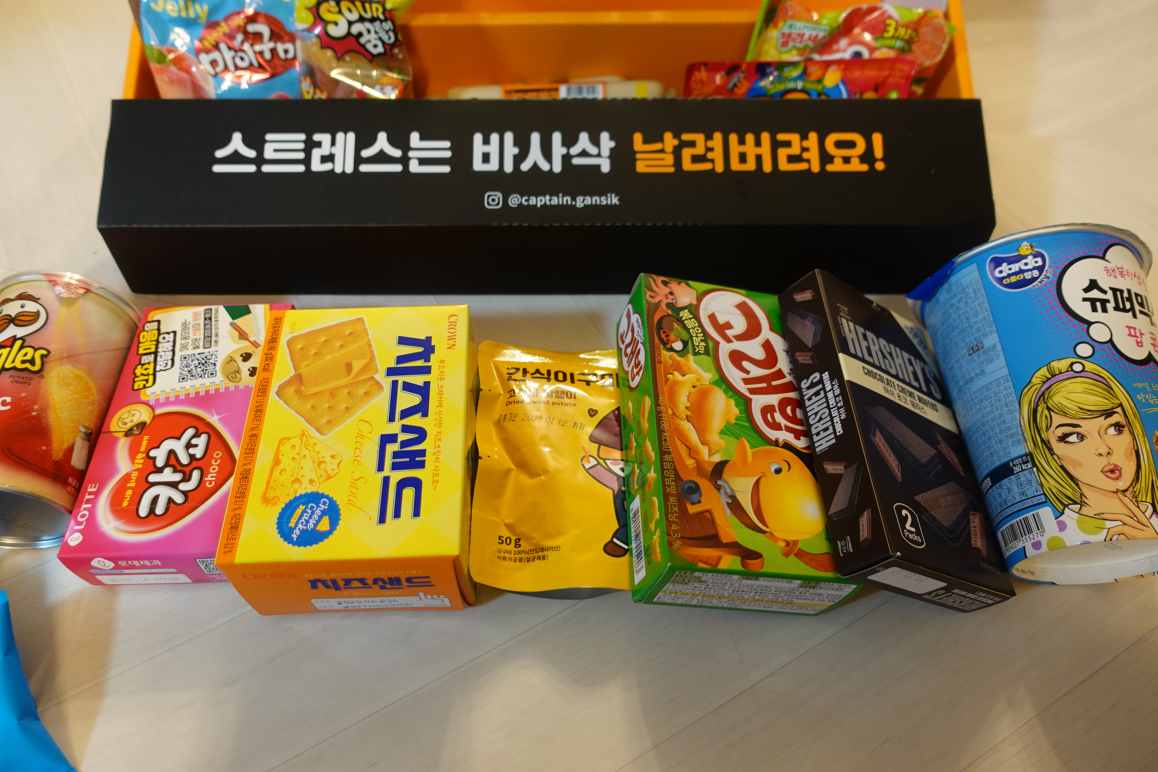 ๊ณผ์์ ๋ณ๊ฐ๋ก ์ด๋ฐ ์คํฐ์ปค๋ ๊ฐ์ด ์ค๋ค. ๊ณผ์ ๋ฐ์ค๋ฅผ ๊พธ๋ฏธ๋ผ๋ ๊ฒ ๊ฐ์๋ฐ ์์ํ ๋์กฐํด์ฃผ์ง.