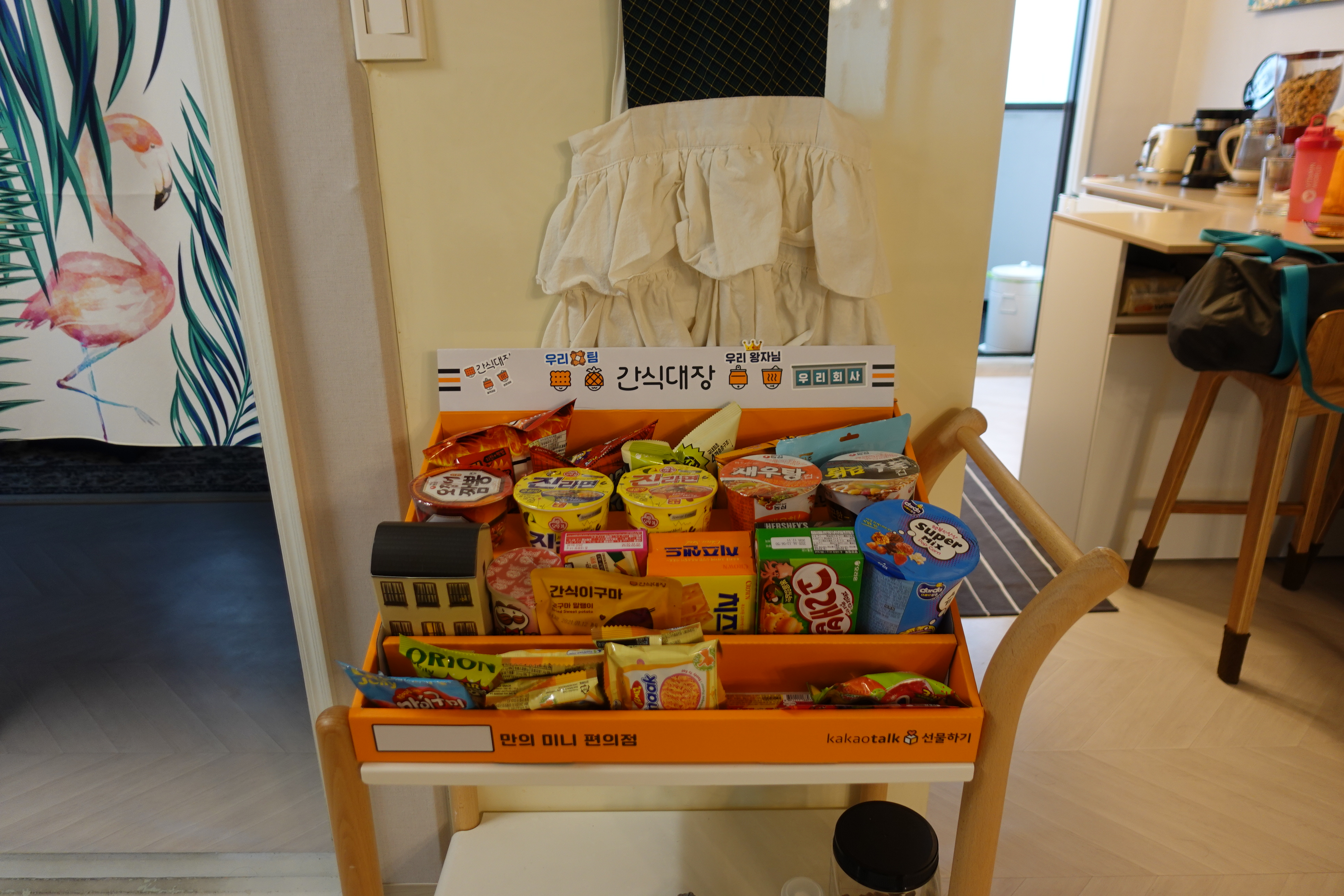 ๊ฐ์๋์ฅ ๋ฐ์ค๋ ๊ฑฐ์ค๊ณผ ์ฃผ๋ฐฉ, ์๋ฐฉ๊ณผ ๋ด๋ฐฉ์ผ๋ก ์ด์ด์ง๋ ์ฐ๋ฆฌ์ง ์์ง(?)์ ๋ชจ์ ๋์๋ค. ์๋ค๊ฐ๋ค ํ๋ฉด์ ํ๋์ฉ ์ฑ ๊บผ๋ด ๋จน์ผ๋ผ๊ณ . ๋์ ๋ณด์ด๋๊น ์๊พธ ๋จน๊ฒ ๋๋. ์์ด๋์ด ์ฐธ ์ข์ ์ ๋ฌผ๊ฐ๋ค.